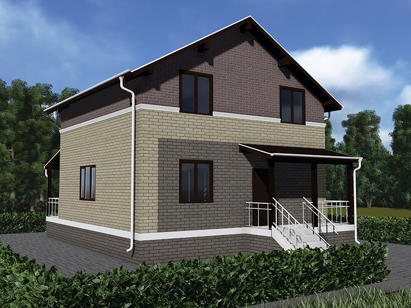 Дом для семьи из 3-4 человек. Отличается наличием гаража и простотой и лаконичностью форм.